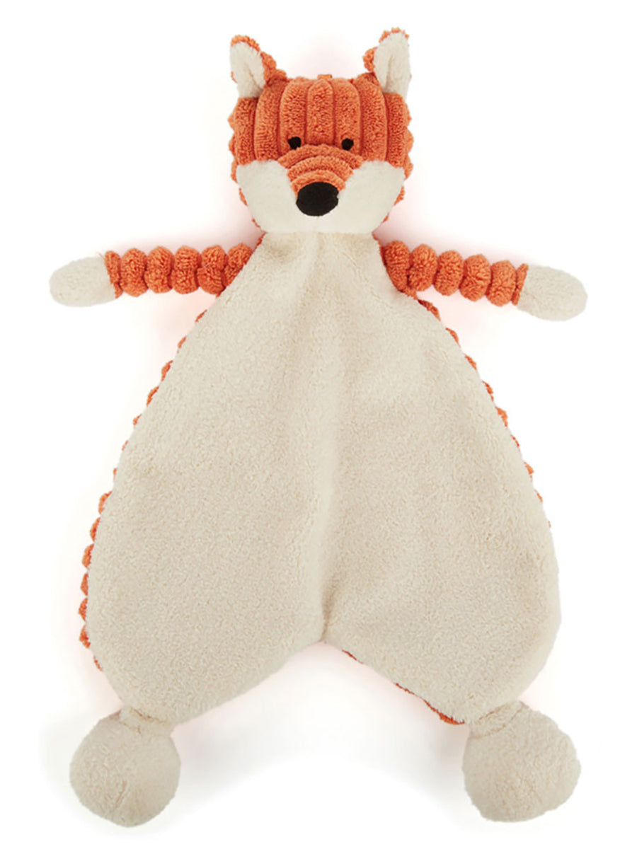 Southern Made presents the delightful Jellycat Cordy Roy Comforter, offering four adorable animal options to soothe and entertain your little ones. This charming comforter features colorful corduroy fabric on the back which provides excellent tactile stimulation for curious babies. Moreover, each animal boasts embroidered eyes, adding a touch of personality and warmth.