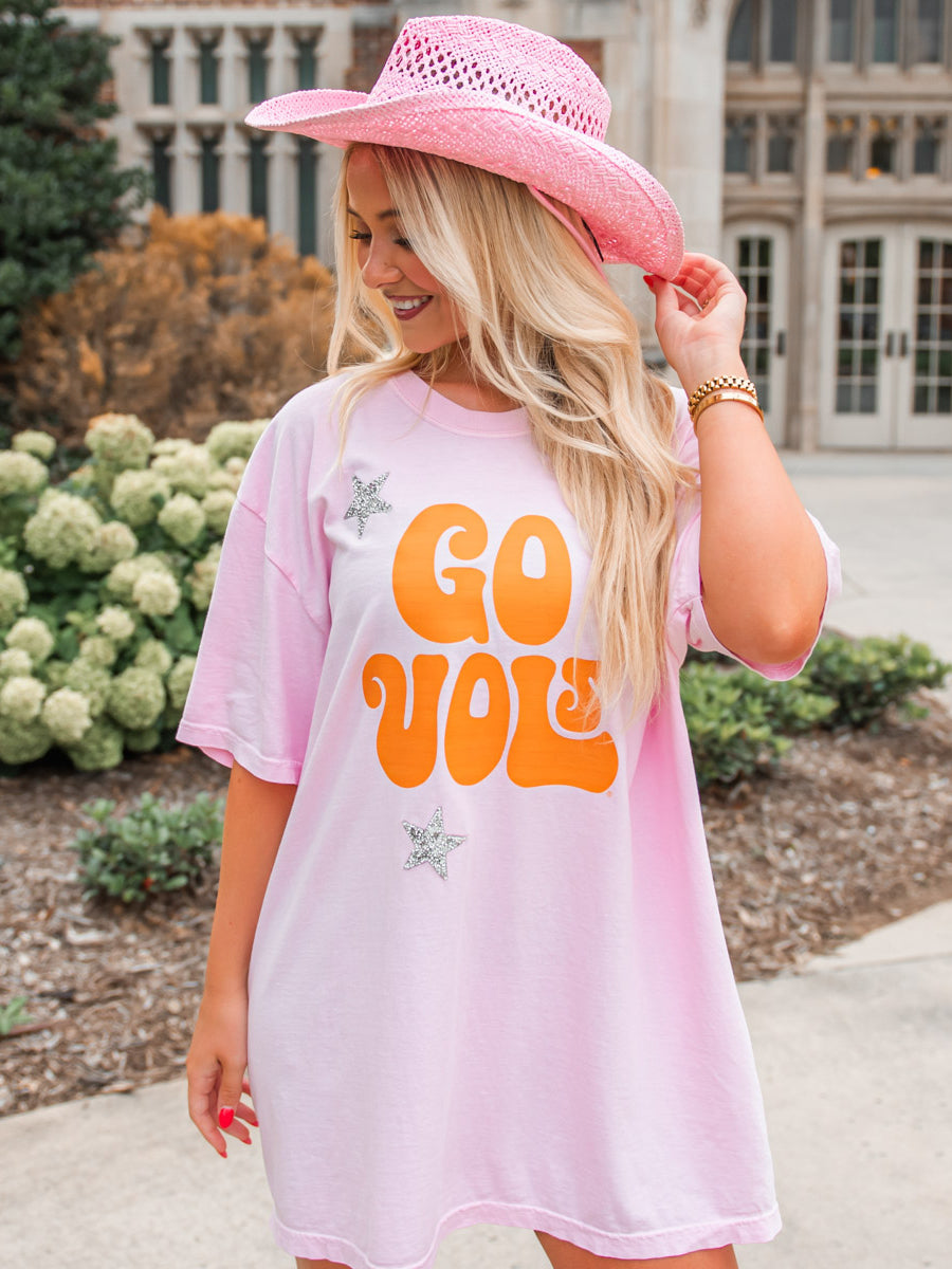 Pink "Go Vols" Sparkly Stars Adult T-Shirt
