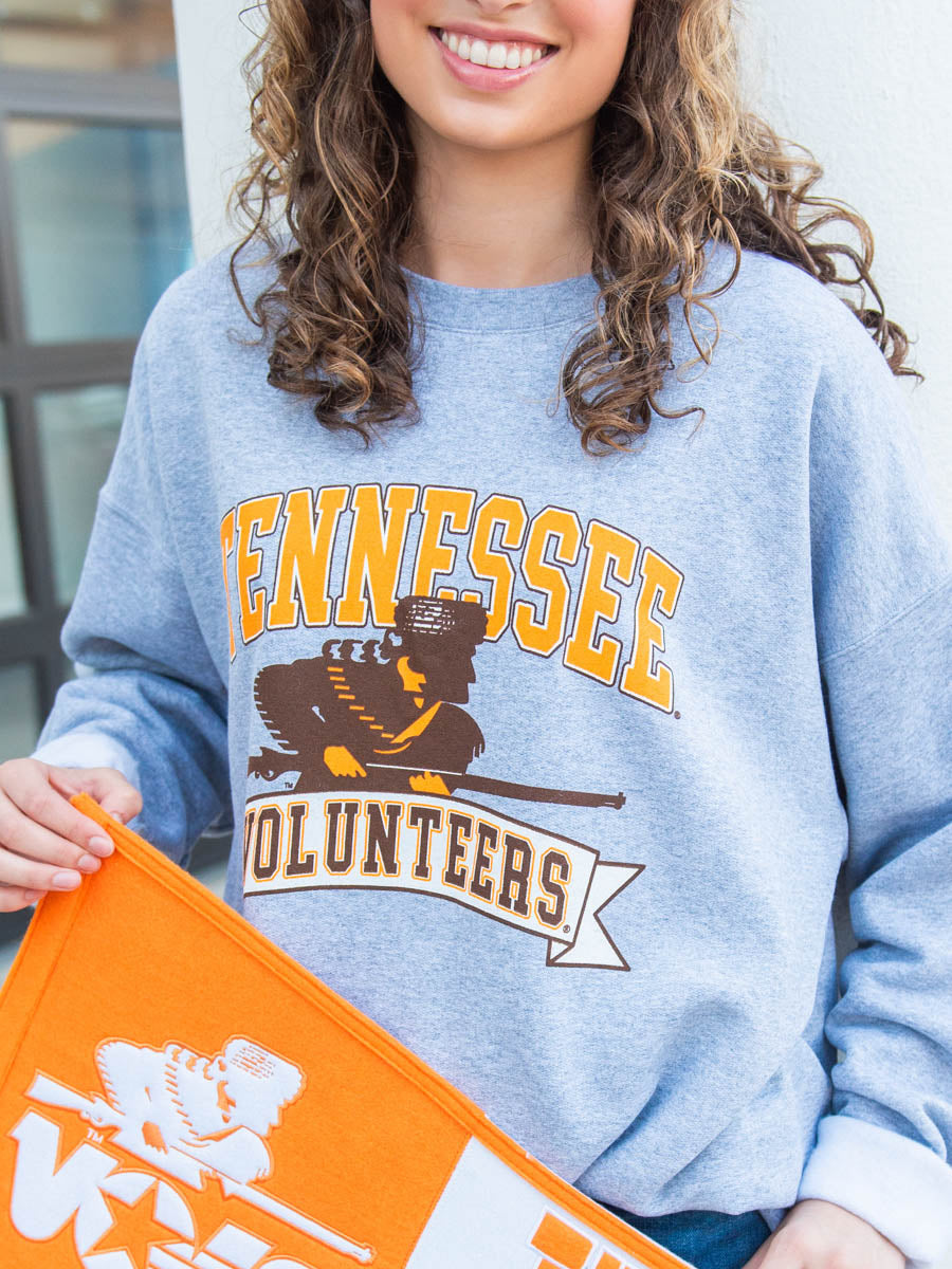 Calling all vintage Vol fans! Our Tennessee Volunteers Rifleman Crew Sweatshirt is a bit of Vol history! It throws it back to 1983 with a blast from the past! Sport a light grey crew with classic orange and white lettering.